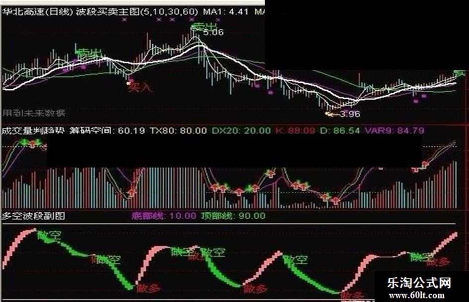 DRAWTEXT(CROSS(D,K) AND MA(CLOSE,5),D,'做空'),COLORGREEN;
