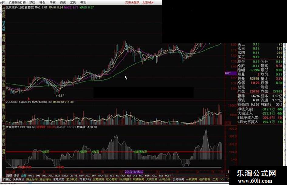 DRAWTEXT(CROSS(CCI,-100),-100,'●抄底'),LINETHICK3,COLORRED;