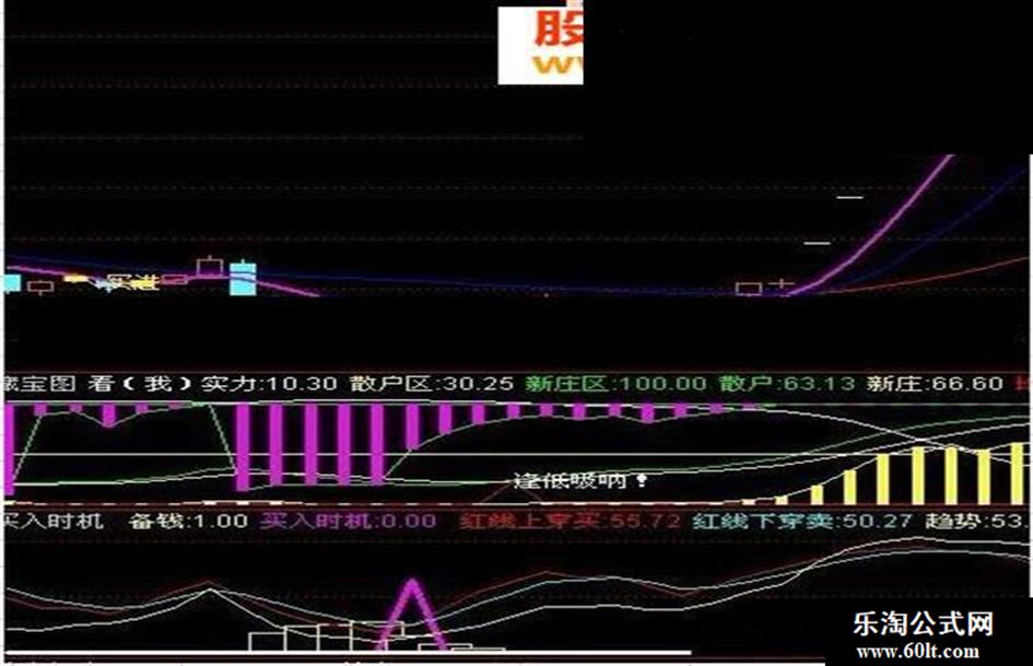 DRAWTEXT(CROSS(散户,新庄) AND 散户<30,新庄,'逢低吸呐 !'), ,COLORWHITE;