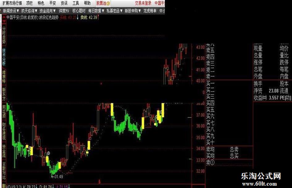 卖线:EMA(SLOPE(C,21)*20+C,42),POINTDOT,COLORYELLOW;