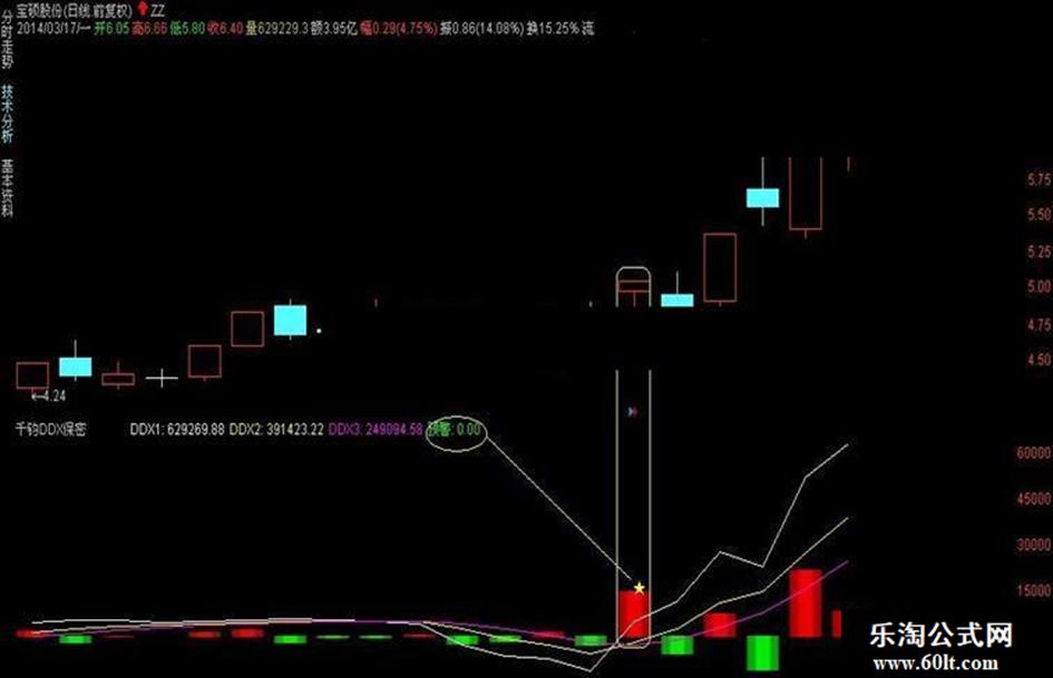 预警:DDX>0 and ma(v,5)>ma(ma(v,5),5) and CROSS(DDX1,DDX2),LINETHICK;
