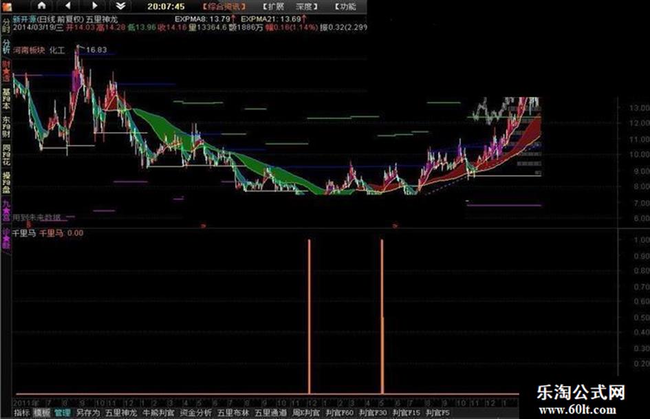 3.出现信号时可以关注、择机买入,公式信号较少,一般可以在考虑买点前的那个低点的一倍涨幅后卖出!这样的股票一年做2-3个就够了!!