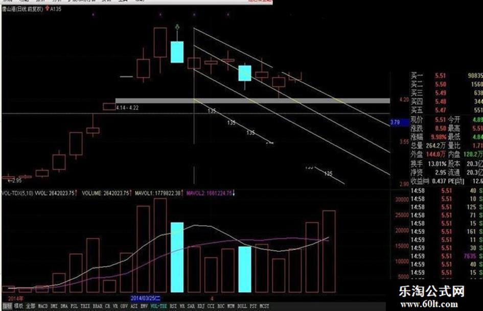 上穿一条平行线为买进,下一条平行线有支撑,高位注意风险,