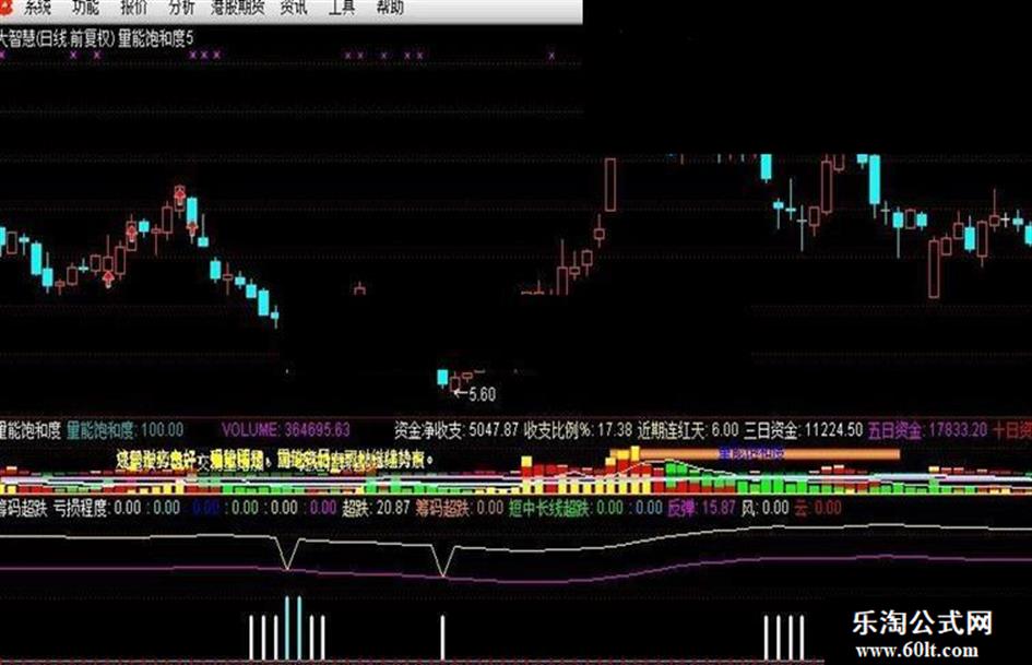 云:IF(超跌=反弹 AND CYS13<=-16 AND 筹码超跌=30 AND 短中长线超跌=40,-20,0),COLORRED,STICK,LINETHICK3;