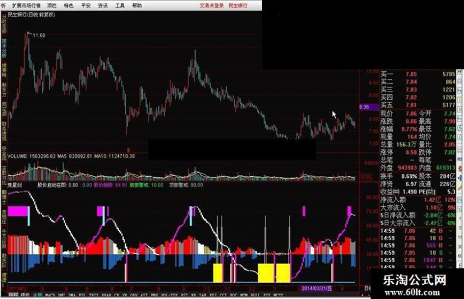ZJ1:=DMA((H+L+C*2)/4,0.9); ZJ2:=V/((H-L)*2-ABS(C-O));