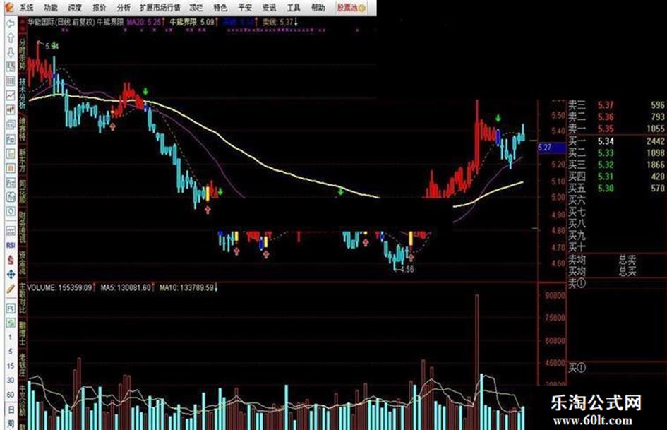 STICKLINE((买线 < 卖线),CLOSE,OPEN,0.4,1),COLORFFFF00;