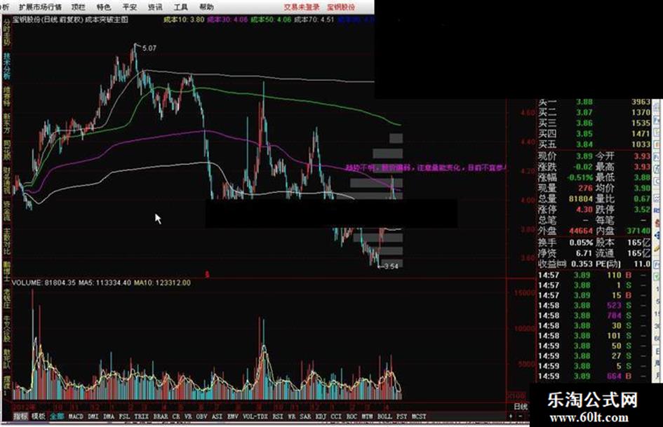,'该股走势趋弱,量能不足,减持大部分筹码'),COLORFF00FF ;