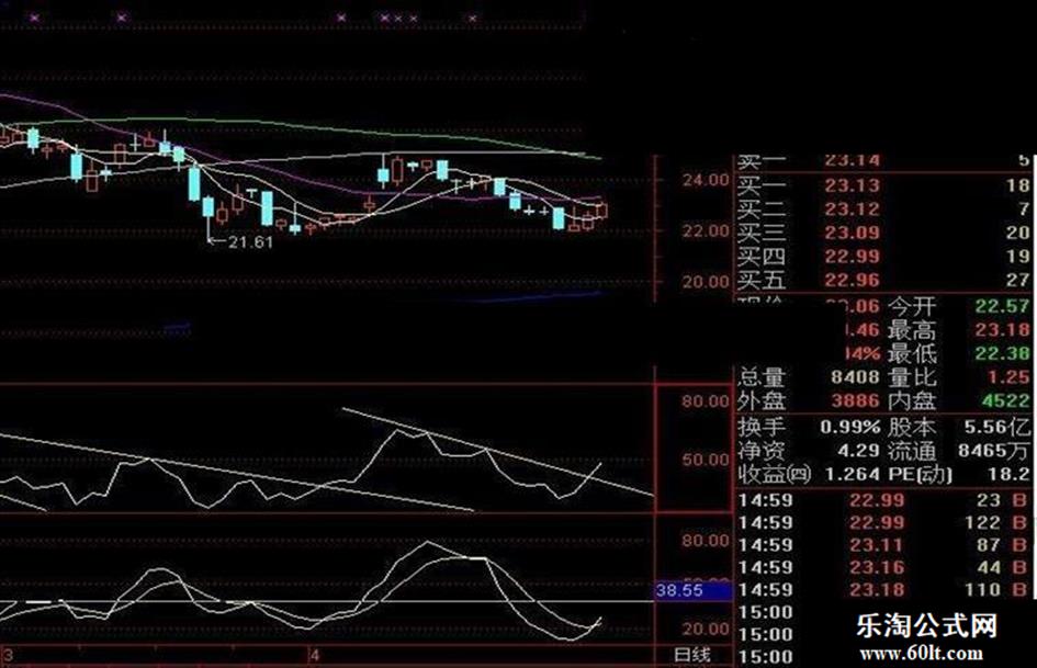 压一:=DRAWLINE(S2,RSI,S1,RSI,1),COLOR00B5B9,COLORRED; {压力1}