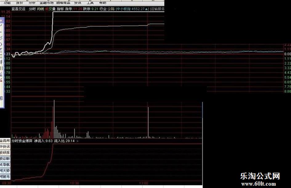 IF(净流入<0,净流入,DRAWNULL),COLORGREEN;