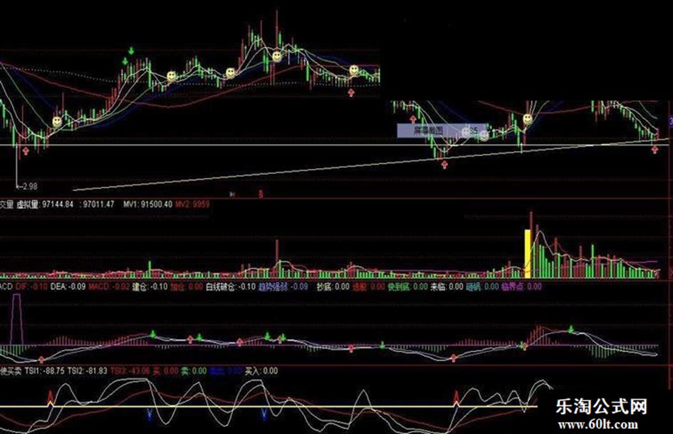 买:IF(TSI3<-45 AND CROSS(TSI2,TSI3),55,00),LINETHICK2,COLORRED;