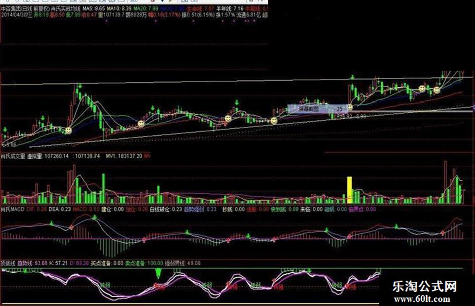 买点准备:IF(趋势线<=10,30,0),LINETHICK2,COLORYELLOW;