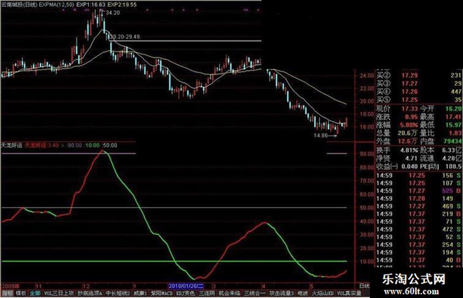 天龙好运: (0-拾钱)*祝,COLORRED,LINETHICK2;IF(天龙好运<REF(天龙好运,1),天龙好运,DRAWNULL),COLORGREEN,LINETHICK2;