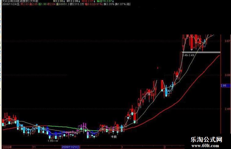 DRAWTEXT(X,MA(C,120)-0.13,'牛股'),LINETHICK3,COLORWHITE;
