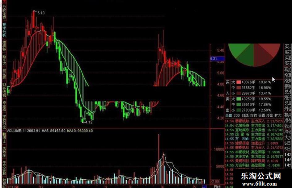 STICKLINE(买线< 卖线,买线,卖线,0,1),COLORGREEN;