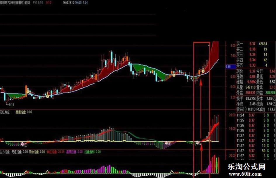有庄控盘:IF(控盘>REF(控盘,1) AND 控盘>0,控盘,0),COLORRED,LINETHICK1;