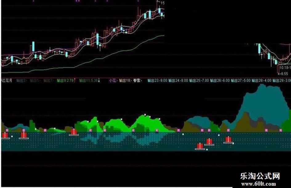小花:IF(MACD>=0 AND REF(MACD,1)<0,1,DRAWNULL),CROSSDOT,LINETHICK6,COLORFF33FF;