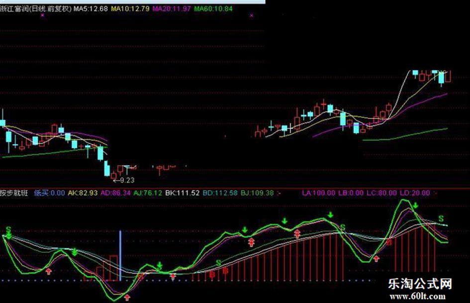 AK: EMA(ZIG6,2)*1.22;AD: EMA(AK,2);AJ: 3*AK-2*AD,LINETHICK2;