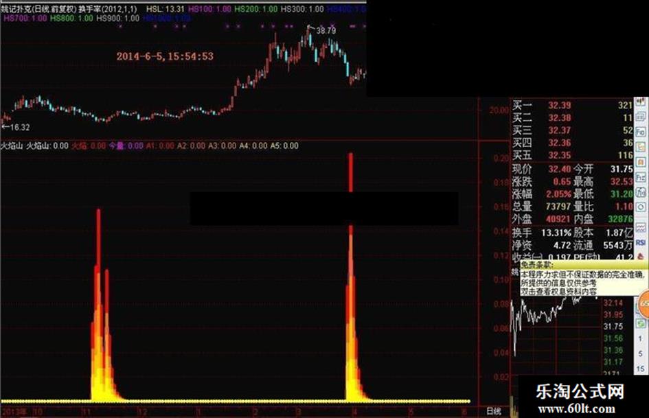 A3:IF(火焰山>0,今量*0.6,0),STICK,LINETHICK5, COLOR0099FF;