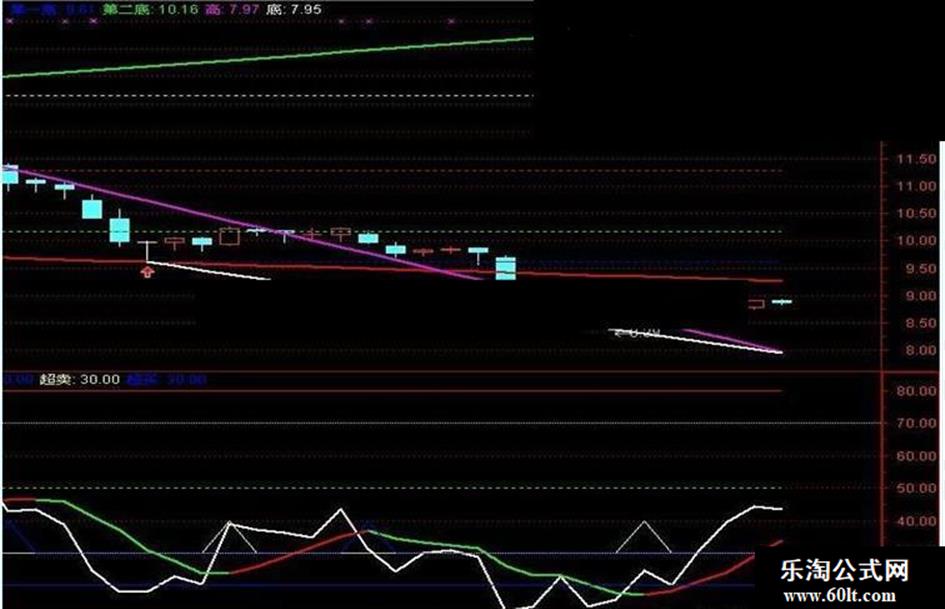 超卖: IF(CROSS(快线,慢线),40,30)COLORYELLOW;