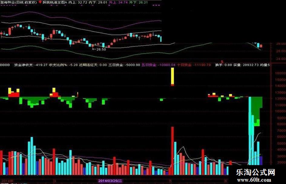 资金收支:=(HSL*0.4+LLJX),LINETHICK0;万元:=AMOUNT/10000{0000},VOLSTICK,COLORFF00FF;