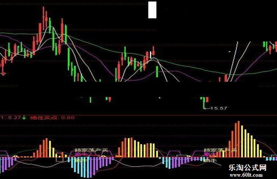 {DRAWTEXT(CROSS(绝佳买点,2.40000) ,-55,'疯牛1'),COLORFFFFCC,LINETHICK3 ; };