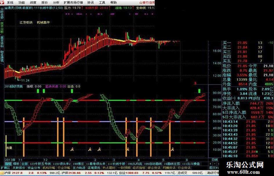 低吸:IF(CROSS(RSI,11),70,0),COLORWHITE,POINTDOT;