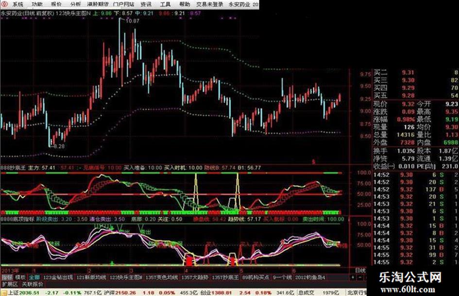 买点准备:IF(趋势线2<=10,30,0),LINETHICK2,COLORYELLOW;