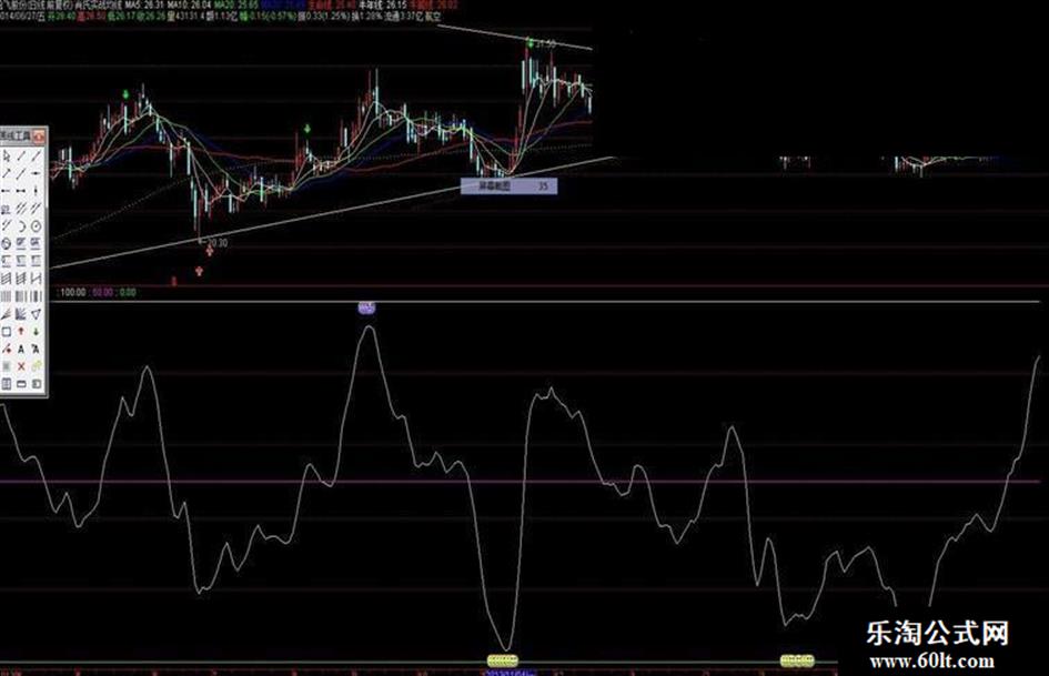 顶: DRAWICON(AA>90 AND AA>REF(AA,1),100,6),COLORGREEN;