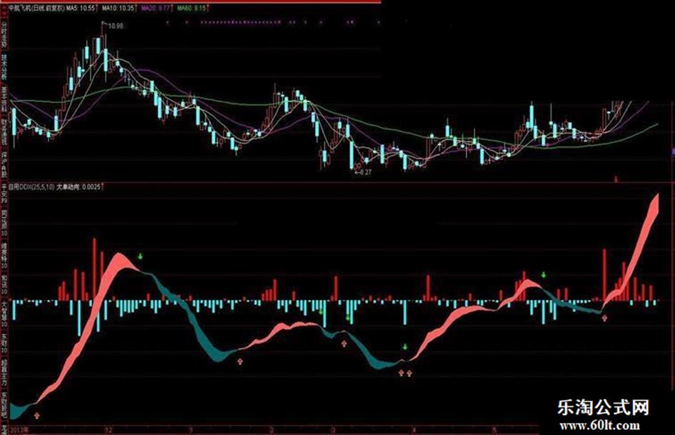 1.红带持股,绿带持币; 2.出红箭头买入,出蓝箭头卖出. 炒股其实很简单. 忘了说了,本自编DDX公式需要能看L2数据的通达信软件才能正常使用.