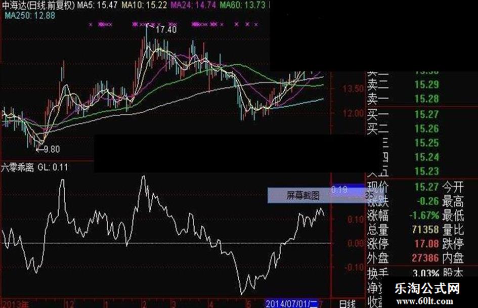可以看到,当图中的GL值达到0.25左右时见顶,达到-0.2左右时见底。 每只股票的弹性不一样,不同的股GL值不同,但同一只股票的顶底的GL值大致是差不多的,把K线缩窄,很直观就可以看到。 一般来说,多数股票GL值若超0.2,便要小心了,此时一般不再加仓只做减仓,当然,也最好不要开仓。
