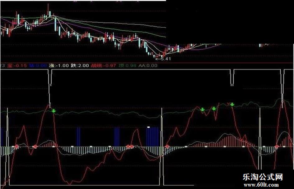 涨: IF(TROUGHBARS(3,15,1)=0 AND HIGH>LOW+0.01,1,-1),COLORYELLOW ,LINETHICK1 ;