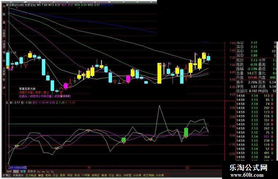 STICKLINE(CROSS(BI,价) ,BI,价,3,0),COLOR32CD32 ;