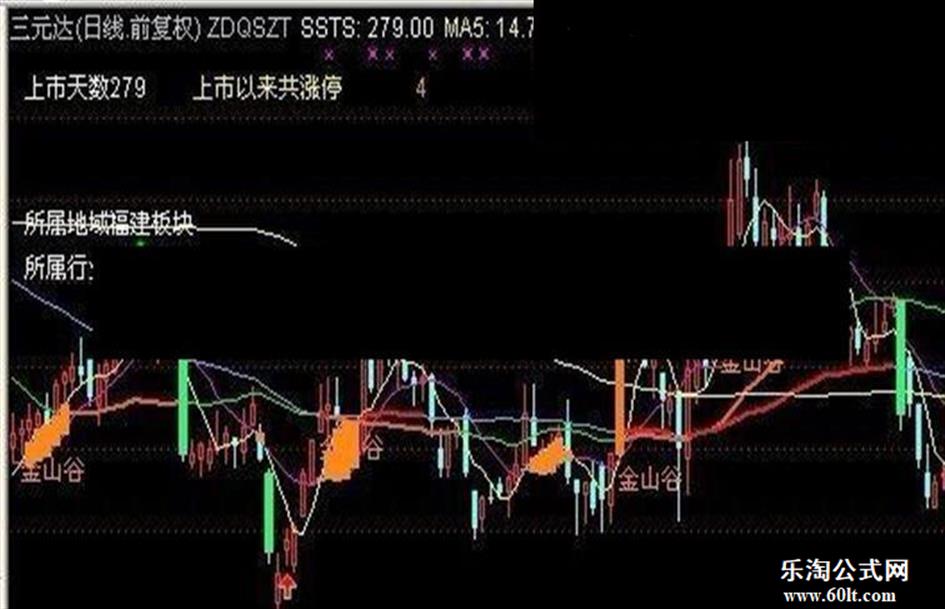 DRAWTEXT(COUNT(CROSS(MA5,MA10),21)>1 AND CROSS(MA5,MA10),L,'金山谷'),COLOR1788FF;