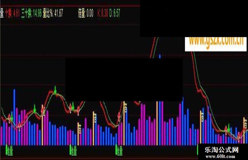 STICKLINE(CLOSE>=OPEN,0,量*1,0.8,0),COLORCC00CC;