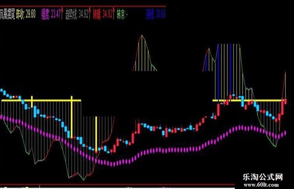 转凉:IF(趋势线<REF(趋势线,1),趋势线,DRAWNULL),COLORGREEN,LINETHICK1;