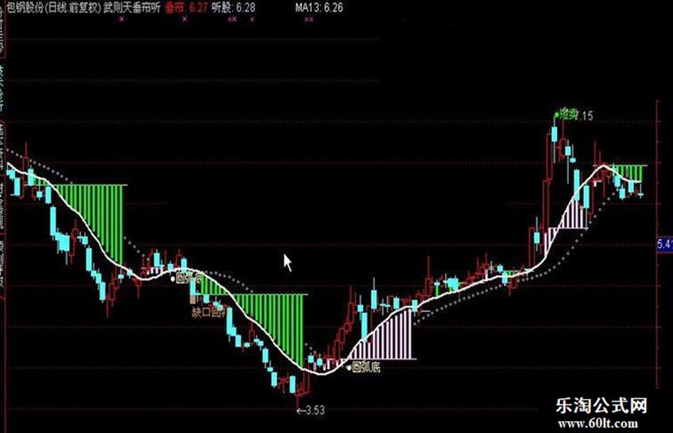 DRAWTEXT(CROSS(MA5,听股) AND MA5>听股 AND C>O,MA13-0.12,'垂帘听股'),COLORWHITE;