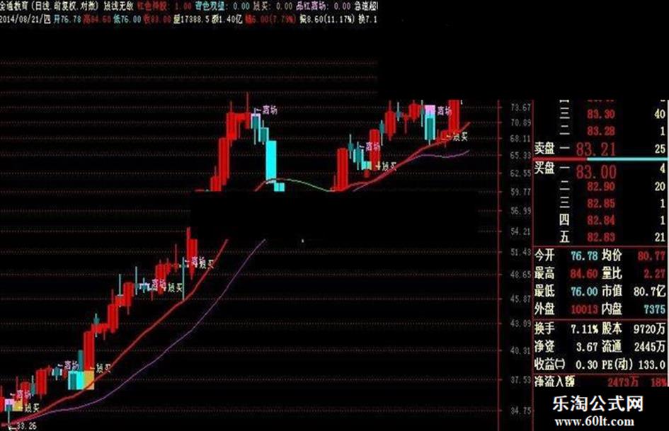 品红离场:VAR1A,REF(CLOSE,1),REF(CLOSE,2),COLORFF99FF,NODRAW;