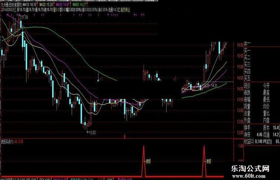 波段买点,出信号买入。信号筛选要参考形态与MACD、KDJ的情形。用好了可以抓到牛股。 随便截一个图的,要的自己下~~~