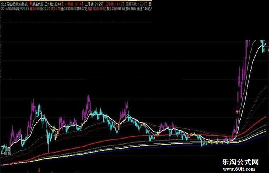 工作线:EMA(C,14),COLOR00FFFF,LINETHICK1; 一号线:EMA(CLOSE,144),POINTDOT,LINETHICK2,COLOR0000FF; 二号线:EMA(C,25),COLORWHITE,LINETHICK2; 三号线:EMA(C,318),COLOR0000FF,LINETHICK2; 四黑马线:EMA(C,453),CIRCLEDOT,LINETHICK1,COLOR428899; 五号线:EMA(C,550),COLORFFCC66; 六号线:EMA(C,610),LINETHICK2,COLORYELLOW; 七号线:EMA(C,730),COLORBLUE; 八号线:EMA(C,99),POINTDOT,LINETHICK2,COLORWHITE; DIFF:=( EMA(CLOSE,7) - EMA(CLOSE,19)),COLORWHITE; DEA:=EMA(DIFF,9),COLORF00FF0 ; MACD:=0.90*(DIFF-DEA), COLORSTICK; TJ:=(DIFF>=DEA); TJ1:=(DIFF>=0); {STICKLINE(TJ,H,L,0,0),COLORYELLOW;} STICKLINE(TJ,O,C,3,1),COLORYELLOW; STICKLINE(TJ1 AND TJ,H,L,0,0),COLORF00FF0; STICKLINE(TJ1 AND TJ,O,C,3,1),COLORF00FF0; STICKLINE(DIFF=0.03) OR (CROSS(SK,SD) AND SK<=-0.14 ) OR (CROSS(SK,SD) AND SK<=0.05 AND (V/MA(V,5)>2 OR C/REF(C,1)>0.035)) ,L*0.99,'短线'),COLORRED;} {STICKLINE((CROSS(SK,SD) AND SK<-0.04 AND (C-REF(C,1))/REF(C,1)>=0.03) OR (CROSS(SK,SD) AND SK<=-0.14 ) OR (CROSS(SK,SD) AND SK<=0.05 AND (V/MA(V,5)>2 OR C/REF(C,1)>0.035)),H,L,0,0),COLORRED;} STICKLINE((CROSS(SK,SD) AND SK<-0.04 AND (C-REF(C,1))/REF(C,1)>=0.03) OR (CROSS(SK,SD) AND SK<=-0.14 ) OR (CROSS(SK,SD) AND SK<=0.05 AND (V/MA(V,5)>2 OR C/REF(C,1)>0.035)),O,C,3,0),COLORRED; SS:=CROSS(二号线,八号线) AND C>1.5 AND C>REF(C,1.5) AND C/REF(C,1.5)>=0.98 OR CROSS(二号线,三号线) AND C>1.5 AND C>REF(C,1.5) AND C/REF(C,1.5)>=0.98 OR CROSS(二号线,一号线) AND C>1.5 AND C>REF(C,1.5) AND C/REF(C,1.5)>=0.98 AND CROSS(二号线,三号线); DRAWICON(SS,L-0.04,1); DD:=CROSS(八号线,一号线) AND C>1.5 AND C>REF(C,1.5) AND C/REF(C,1.5)>=0.98 OR CROSS(八号线,四黑马线) AND C>1.5 AND C>REF(C,1.5) AND C/REF(C,1.5)>=0.98 OR CROSS(八号线,三号线) AND C>1.5 AND C>REF(C,1.5) AND C/REF(C,1.5)>=0.98 OR CROSS(八号线,三号线) AND C>1.5 AND C>REF(C,1.5) AND C/REF(C,1.5)>=0.98 AND CROSS(二号线,四黑马线); {DD:=CROSS(二号线,四黑马线);};