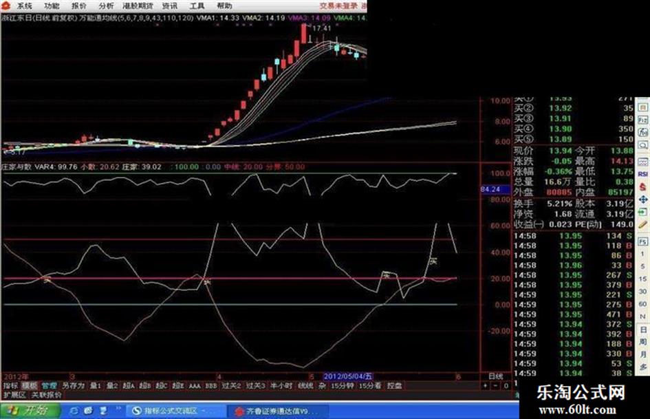 DRAWTEXT(CROSS(庄家,20)AND 小散<80,庄家,'买'),COLORYELLOW;
