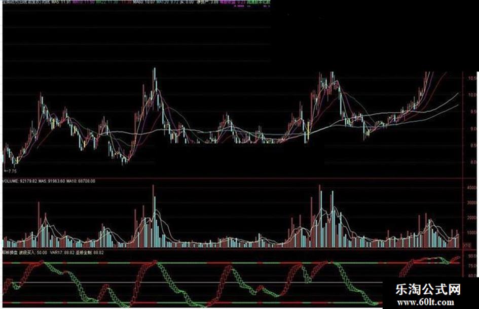 波段买入: IF(VarA+VarB<7 AND CROSS(Var8,Var9) AND Var9<-18 AND Var9<VarB,60,50),coloryellow ;