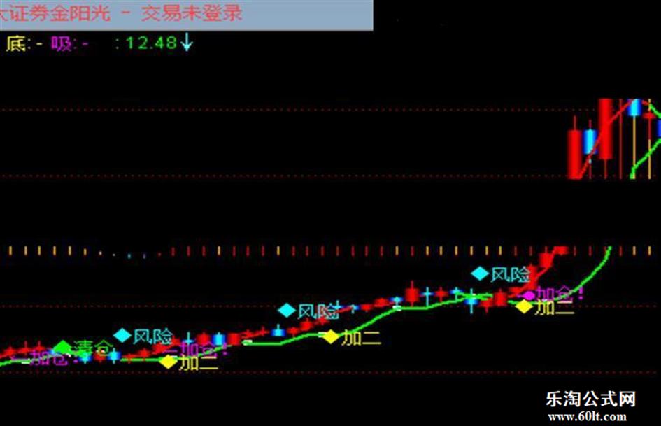 DRAWTEXT(CROSS(MA(C,3),MA(C,9)) AND C>=REF(C,1) AND C>O,L*1.00,'←加仓!'),COLORMAGENTA;