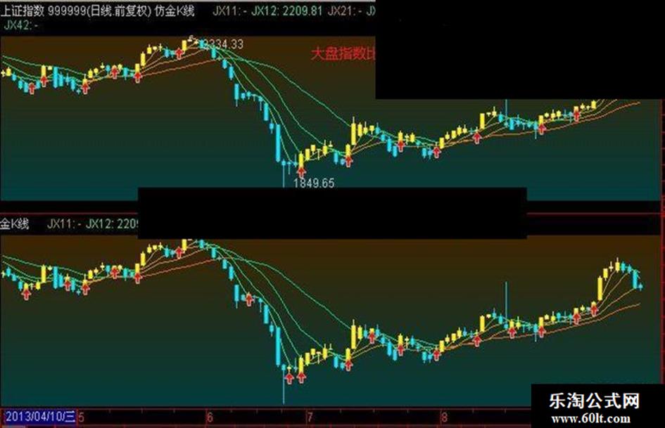 {特注,此公式为【仿金K线】,虽略有差异,差异不大,可以替用【金K线】}