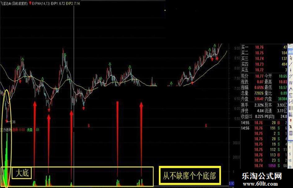 主力进场:这个指标在底部都会出现,从不缺席,但是却又是模糊的。虽然如此,也不失为一个很好的辅助性指标。