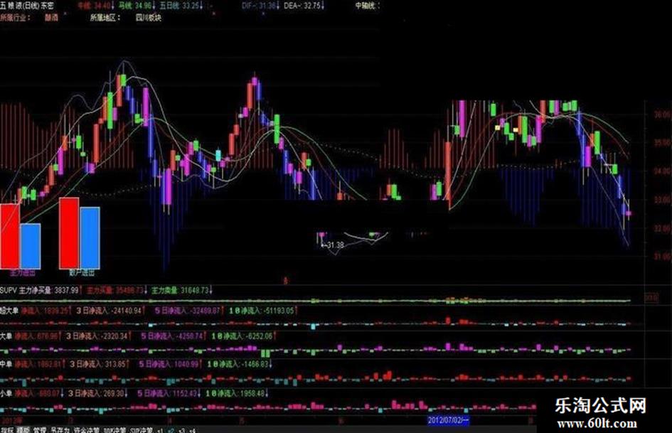 DRAWTEXT_FIX(CURRBARSCOUNT=1,0.015,1,0,'主力进出'),COLORMAGENTA;