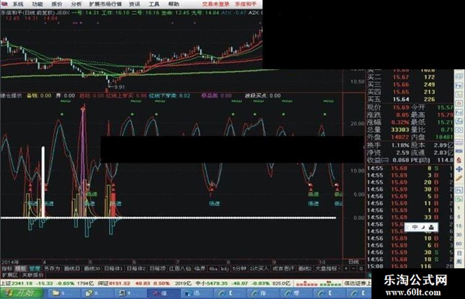 VAR2:=REF(LOW,1); VAR3:=SMA(ABS(LOW-VAR2),13,1)/SMA(MAX(LOW-VAR2,0),13,1)*100; VAR4:=EMA(IF(CLOSE*1.2,VAR3*13,VAR3/13),13); VAR5:=LLV(LOW,34); VAR6:=HHV(VAR4,34); VAR7:=IF(LLV(LOW,55),1,0); VAR8:=EMA(IF(LOW<=VAR5,(VAR4+VAR6*2)/2,0),3)/618*VAR7; VAR9:=EMA(CLOSE,5); VAR10:=(CLOSE-MA(CLOSE,34))/MA(CLOSE,34)*(-10); VAR11:=EMA(IF(LOW<=VAR5,(VAR4+VAR6*2)/2,0),3)/618*VAR7*(-1); VAR12:=EMA(CLOSE,5)*(-1); STICKLINE(VAR8>REF(VAR8,1),0,VAR8,6,1),COLOR10FFFF,LINETHICK3; 备钱:IF(VAR8>REF(VAR8,1),0,VAR8),COLOR0FFFFF; STICKLINE(VAR11>REF(VAR11,1),0,VAR11,6,1),COLORFFF810; 界:0,COLORFFFFFF,LINETHICK1; XL1:=MA(LOW,2)*0.96; XL2:=MA(LOW,26)*0.85; XL3:=REF(XL1,1)<XL2 AND REF(XL1,1)<XL1 AND REF(XL1,1)<REF(XL1,2); STICKLINE(XL3,0,VAR8*3,8,0),COLORRED; 启动:IF(XL3,0,VAR8*3),COLORRED; VA:=(2*C+H+L)/4; VB:=LLV(L,5); VC:=HHV(H,5); 红线上穿买:EMA((VA-VB)/(VC-VB)*27,5),COLORRED; 红线下穿卖:EMA(红线上穿买,3),COLORFFFF00; 散户:= EMA(((2*CLOSE+HIGH+LOW)/4-LLV(LOW,5))/(HHV(HIGH,4)-LLV(LOW,5))*100,4); 庄家:= EMA(0.667*REF(散户,1)+0.333*散户,2); DRAWTEXT(CROSS(散户,庄家) AND 散户<30,5,'低进'),COLOR00FF00; DRAWTEXT(CROSS(散户,庄家) AND 散户<30,7,'●'),COLORFFFFFF; DRAWTEXT(CROSS(庄家,散户) AND 散户>70,25,'高出'),COLOR00FF00; DRAWTEXT(CROSS(庄家,散户) AND 散户>70,22,'●'),COLOR00FF00; 极品底:IF((MA(C,5)-C)/C>0.04 AND (MA(C,10)-MA(C,5))/MA(C,5)>0.04,23,0),LINETHICK2,COLORFF00FF; DRAWICON(极品底=23,23,1),L;