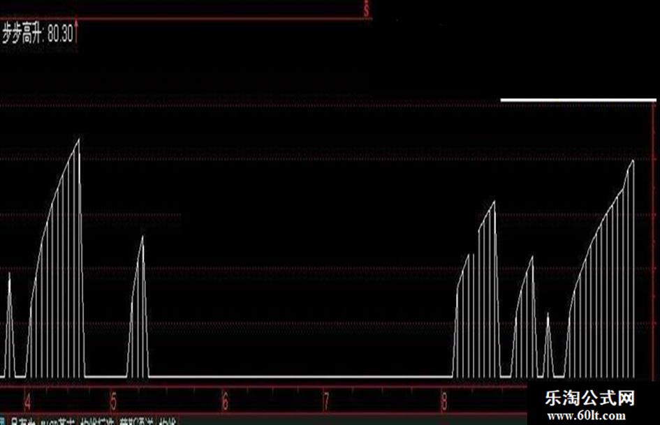 步步高升:IF(AA3>REF(AA3,1),BB7,0),LINESTICK;