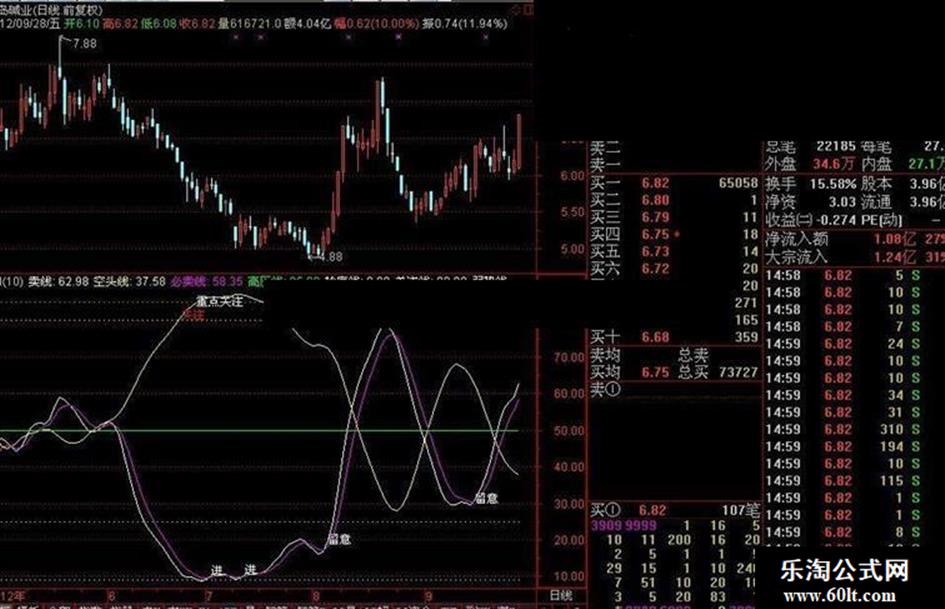 DRAWTEXT(空头线>85 AND CROSS(卖线,必卖线),必卖线*1.15,'进');