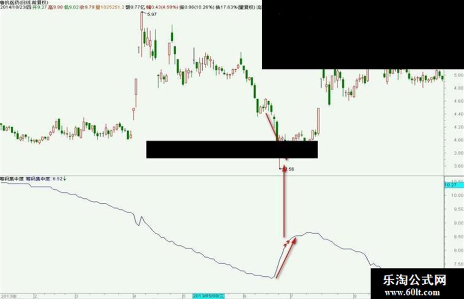筹码集中度:(COST(90+(100-90)/2)-COST((100-90)/2))/(COST(90+(100-90)/2)+COST((100-90)/2))*100/2; DRAWICON(筹码集中度>REF(筹码集中度,1) AND 筹码集中度>REF(筹码集中度,5) AND C<REF(C,1) AND C<REF(C,5) AND REF(C,5)/REF(C,1)>1.05,筹码集中度,1);