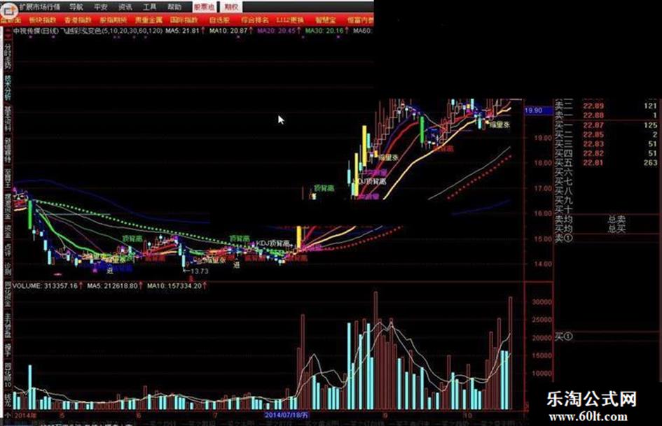 趋势判断:=MA(M3,27*2),COLOR0000FF,NODRAW;